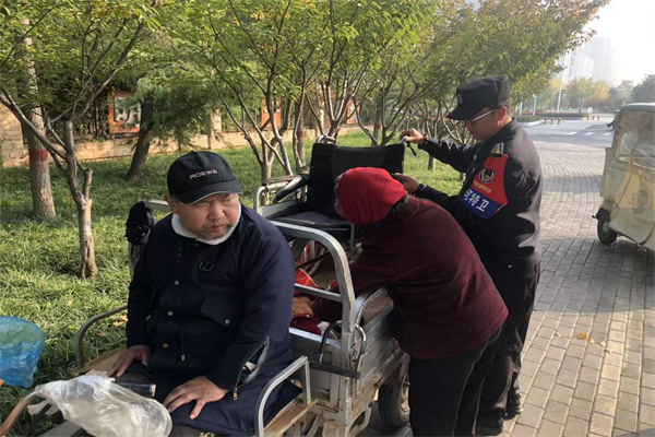 11月1日上午,特保隊(duì)員李志強(qiáng)在中院南門外發(fā)現(xiàn)有兩名信訪群眾身體不便前來中院上訪,他們年紀(jì)較大且腿腳不便,李志強(qiáng)耐心溝通了解后,主動上前攙扶并幫助他們把輪椅裝上三輪車,協(xié)助老人推動三輪車前去信訪大廳。