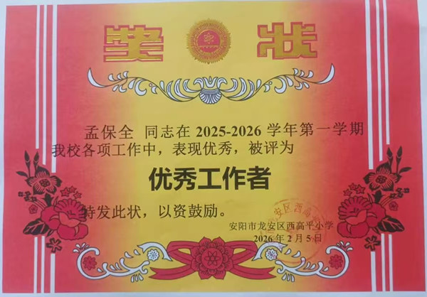 他深耕崗位、用心履職,對(duì)校園每一處設(shè)施的狀況都了然于心,被校長(zhǎng)親切稱贊為校園 “萬能工”;他溫柔以待、呵護(hù)學(xué)生,雨天為孩子撐傘引路,課間為學(xué)生耐心答疑,還常主動(dòng)幫忙修理文具,是學(xué)生眼中和藹可親的長(zhǎng)輩。日復(fù)一日,年復(fù)一年,孟保全在平凡的保安崗位上,用點(diǎn)滴行動(dòng)詮釋著責(zé)任與擔(dān)當(dāng),用堅(jiān)守付出書寫著愛崗敬業(yè)的答卷,成為全校師生學(xué)習(xí)的鮮活榜樣。