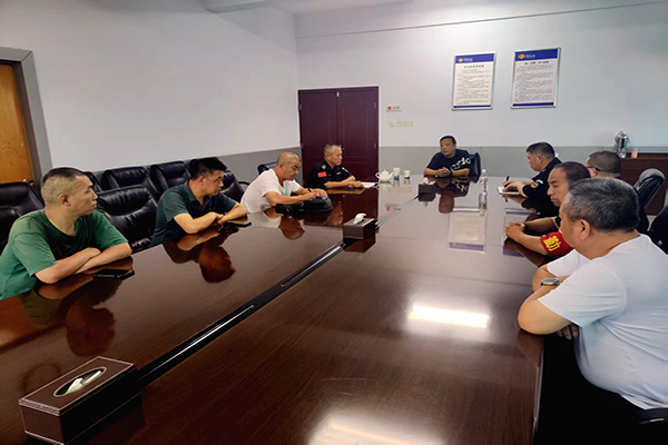 7月5日上午9時,人防二大隊二中隊全體班長于市國稅局會議室召開安全工作例會,副大隊長尚斌參會。